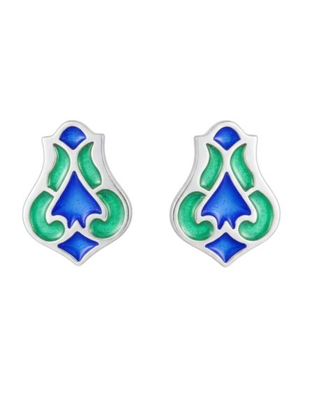 Kis tulipán fülbevaló zöld- kék tűzzománccal (stiftes)