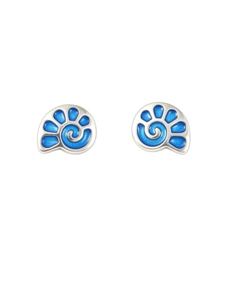 Kis nautilusz fülbevaló tűzzománccal, kék