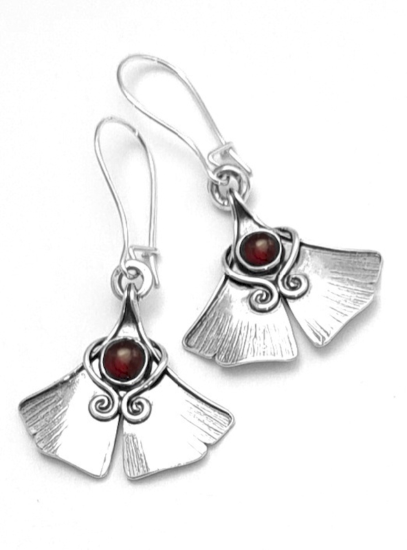 Ginkgo biloba levél fülbevaló gránát ásvánnyal