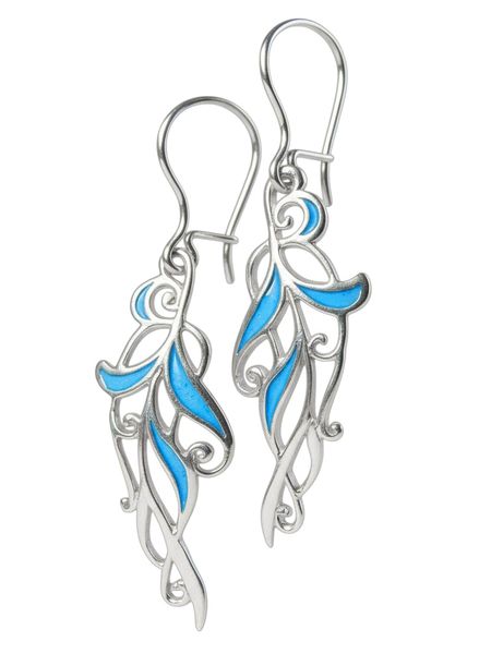 Indás fülbevaló tűzzománccal, kék