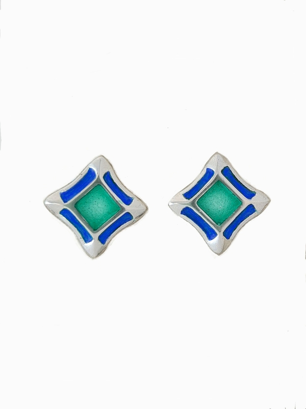 A terméket egyszerű geometriai forma ihlette. A motívum kialakításánál síkból kiemelkedő, egyéni megformálású díszítmény létrehozására törekedtünk. A felületét valódi tűzzománc díszíti, melyet 770 Celsius-fokos kemencében égettünk ki.