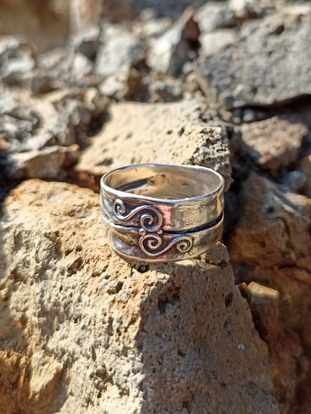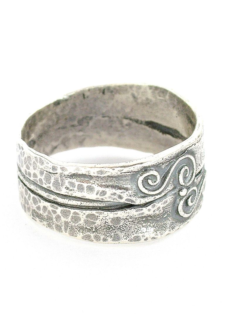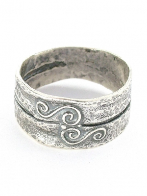 A gyűrt gyűrűt a drapériák redőinek formai változatossága ihlette. Viszonylag széles, robusztus forma.
