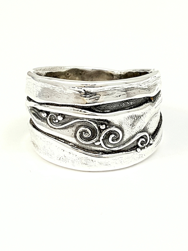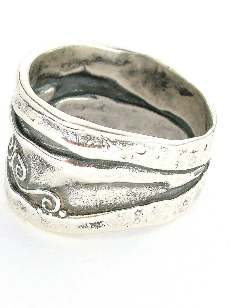 A gyűrt gyűrűt a drapériák redőinek formai változatossága ihlette. Viszonylag széles, robusztus forma.