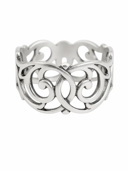 A motívum kialakítását a reneszánsz művészet jegyeit is tükröző magyar úrihímzések formavilága ihlette. A tárgy felületi plasztikáját antikolással tettük karakteresebbé. A díszítmény felszíne a kiemelkedő részeken fényes, ezüstfehér, a mélyedésekben sötétszürke.