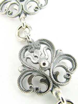A díszítmény szélessége: 15 mm. Alapanyaga: ezüst 925. Hossza: 17 + 3cm.