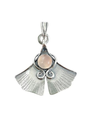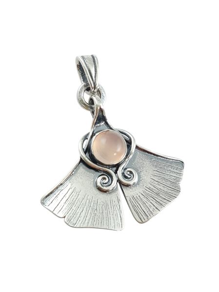 A ginkgo biloba fát szimbólummá emelte számos jellemzője, például a legősibb fafajta, ami a jégkorszakot is túlélte, jól tűri a légszennyezést, a radioaktív sugárzást, ellenáll a betegségeknek, kártevőknek. Leveleiből gyógyszerek hatóanygait állítják elő, teája segíti a szellemi frissesség megőrzését. A gingko levél medált természeti forma ihlette, de magában foglalja a szerves műveltség motívumszerkesztési jellegzetességeit. A medálban rózsakvarcot helyeztünk el stabil foglalatban, ami nem engedi kiesni az ásványt. A rózsakvarc a szeretet, a szerelem ásványa. Segít rátalálni a élet szépségeire és a lelki egyensúlyra.