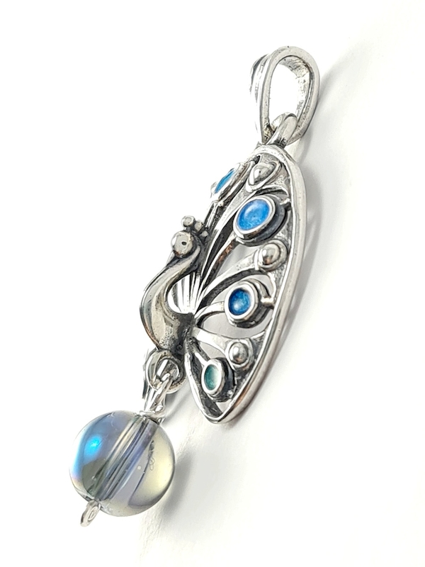 A medál a Magyar Művészeti Akadémia által támogatott 3 éves ösztöndíj programban készült. A munkatervem részét képezte a magyar népi balladák által ihletett ékszerek készítése. A balladák közül „A pávás leány” típusú népköltészeti alkotásokhoz kapcsolódóan terveztem ékszert. A balladában a páva a fiatal lány tisztaságát, szépségét jelképezi. A megformálás alapjául szolgáltak a hímzéseken megjelenő madárábrázolások és a fából készült „babukamadár” háromdimenziós kialakítása. A térbeli megformáláshoz papírmodellt készítettem, majd a rajz pontosítását követően az áttört mintázatot fűrészeltem, a részeket forrasztással összeillesztettem. A páva széttárt faroktollán kör alakú díszítményeket helyeztem el, melyeket később tűzzománccal színeztem.