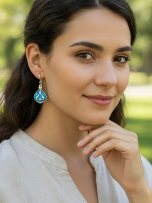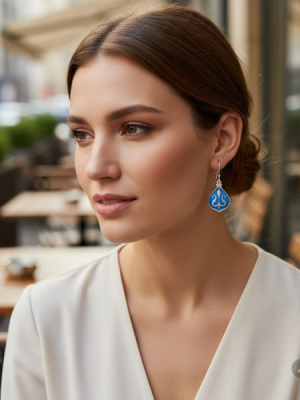 Ezüstözött liliomos fülbevaló, kék, nagy - Rácz Erika