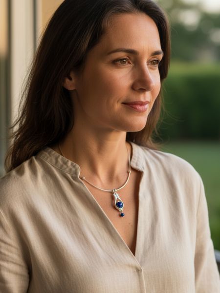 A motívum kialakítását a magyar népművészetben gyakran megjelenő tulipánábrázolás ihlette, ami a nőiséget jelképezi. A medált ásványgyöngy díszíti.