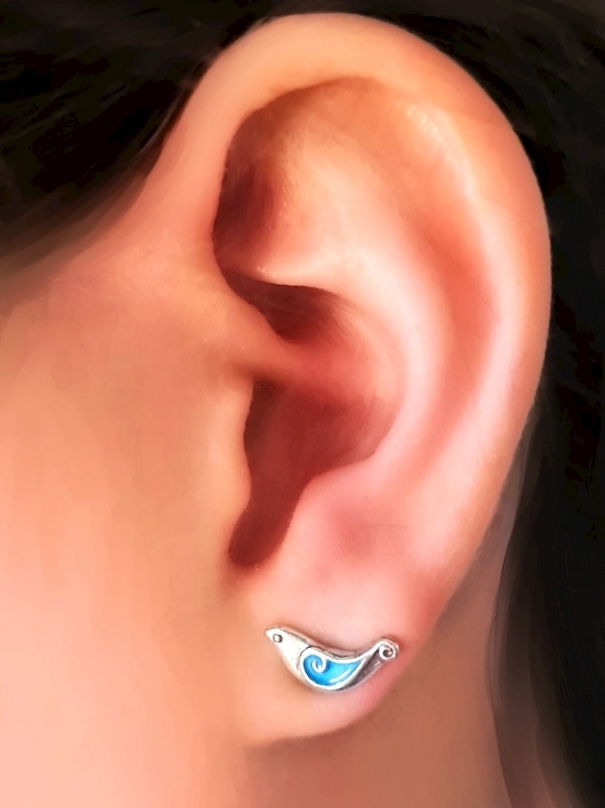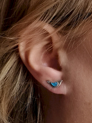 Madárka fülbevaló, stiftes, kék - Rácz Erika