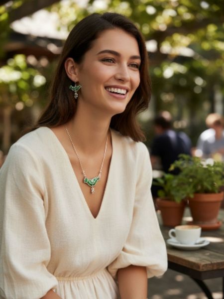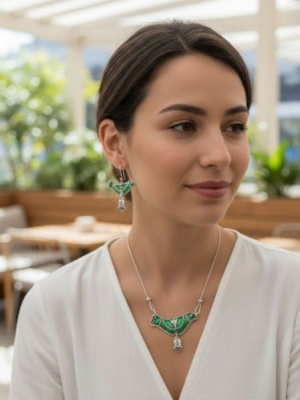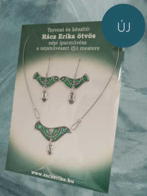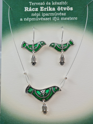 Madaras ékszerszett, ezüstözött, zöld - Rácz Erika