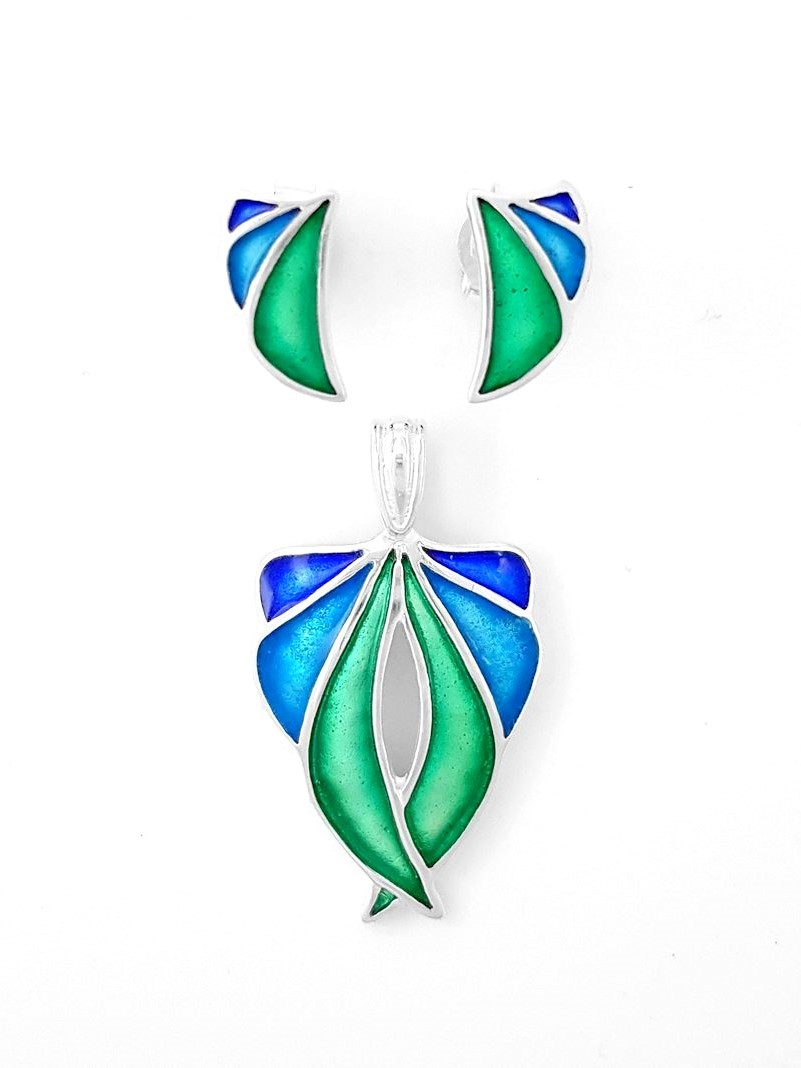 A szirom szettet természeti forma ihlette, de magában foglalja a szerves műveltség motívumszerkesztési jellegzetességeit. A felületét valódi tűzzománc díszíti, melyet 770 Celsius-fokos kemencében égettünk ki.